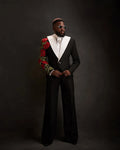 Make a romantic, fashion-forward statement on your wedding day with this Unique Tailor‑Made Men’s Suit — a two‑piece set featuring a single-button coat with a sculpted peaked lapel and a refined rose motif. Crafted for grooms who want a distinctive blend of elegance and bespoke detail, the set pairs a couture blazer with perfectly tailored trousers for photos and moments that last.