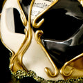 Step into mystery and elegance with this Venetian ball upper half-face masquerade mask, designed in a chic cat style. Perfect for Halloween, themed parties, cosplay, dance events, and makeup photo shoots, this unique mask makes a captivating addition to any costume. Add an enchanting touch to your look with this versatile prop, ideal for standing out at any celebration.