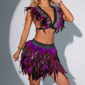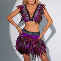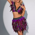 Vintage Harajuku Carnival Makeup Faux Feather Short Skirt Sets Women Festival Rave Performance Attire Skirt Suit Y2k Streetwear