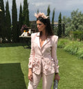 Vintage Pink Applique Dresses Flowers Slim Fit Jacket Custom Made Celebrity Party Prom Formal Blazer 2 Piece Set