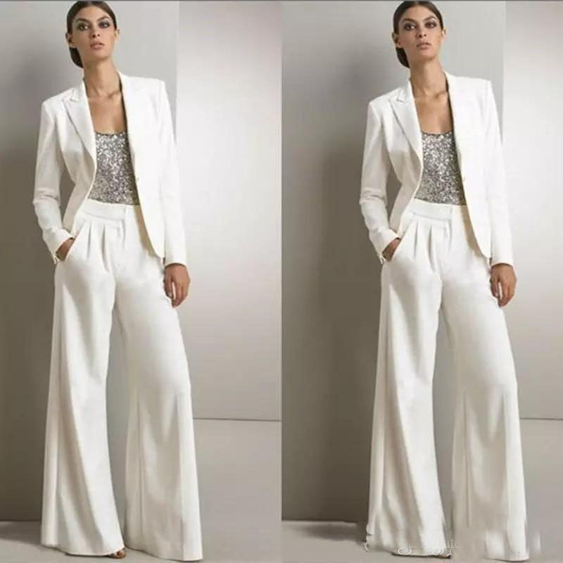 White Women Suits Sets Blazer+Wide Leg Pants 2 Pcs Chic Wedding Tuxedo Coat Loose Prom Dress Tailored Made