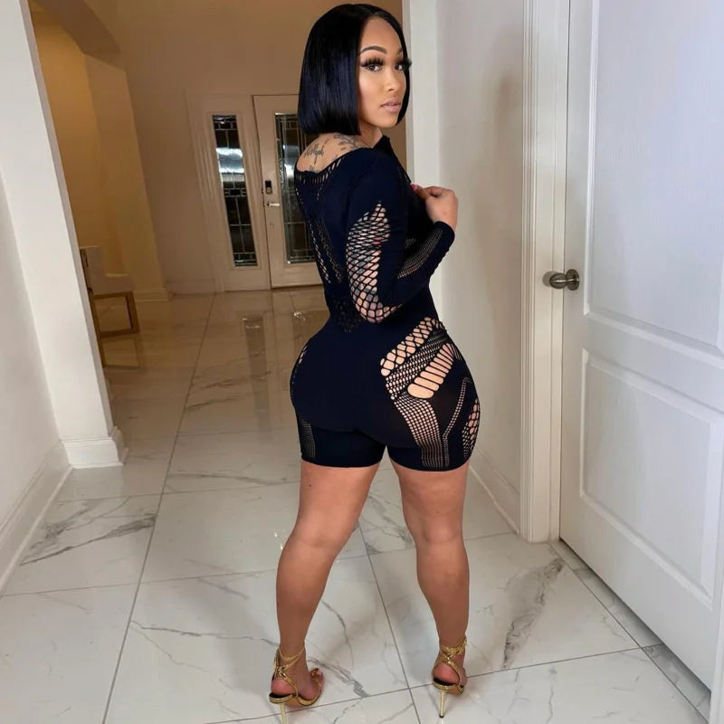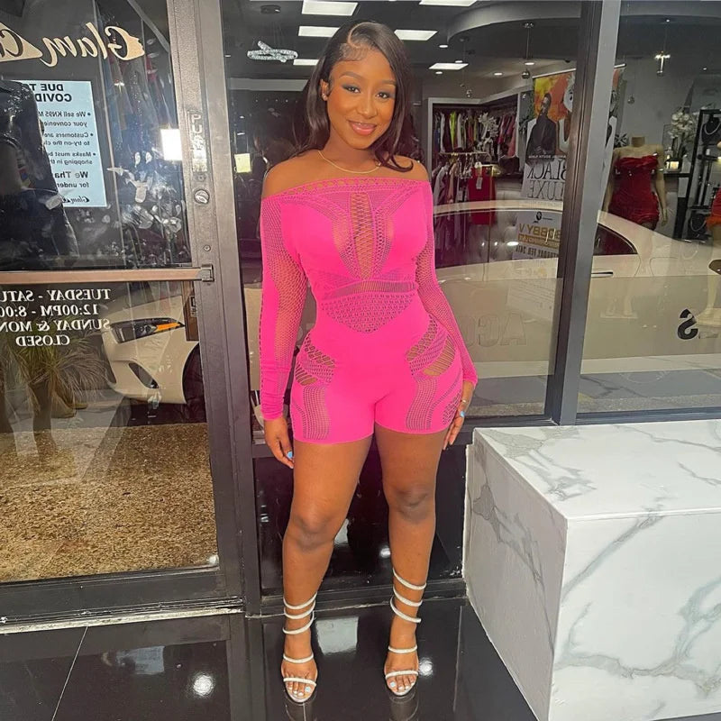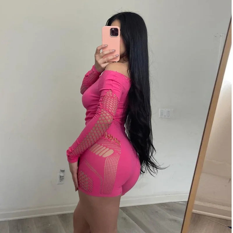 Elevate your style with this eye-catching hollow out jumpsuit for women. Designed as a sleek, one-piece romper, it showcases a flattering bodycon fit and comes in classic black or striking rose red. Featuring long sleeves and bold cut-out details, this playsuit is perfect for nights out, parties, or any event where you want to make a fashionable statement.