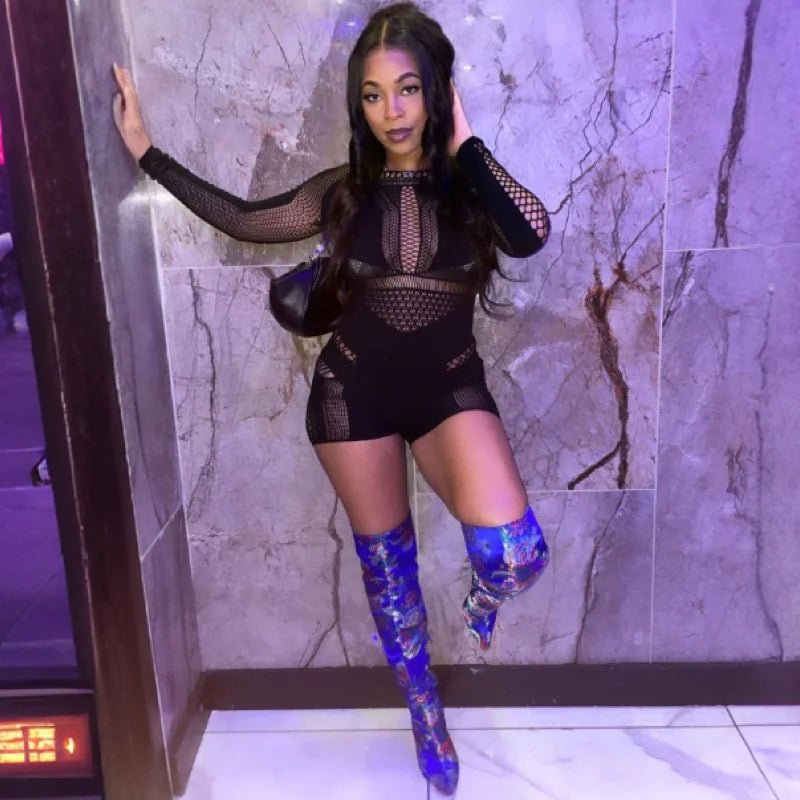 Hollow Out Jumpsuit Women One-pieces Rompers Womens Black Bodycon Rose Red Long Sleeve Romper Playsuits