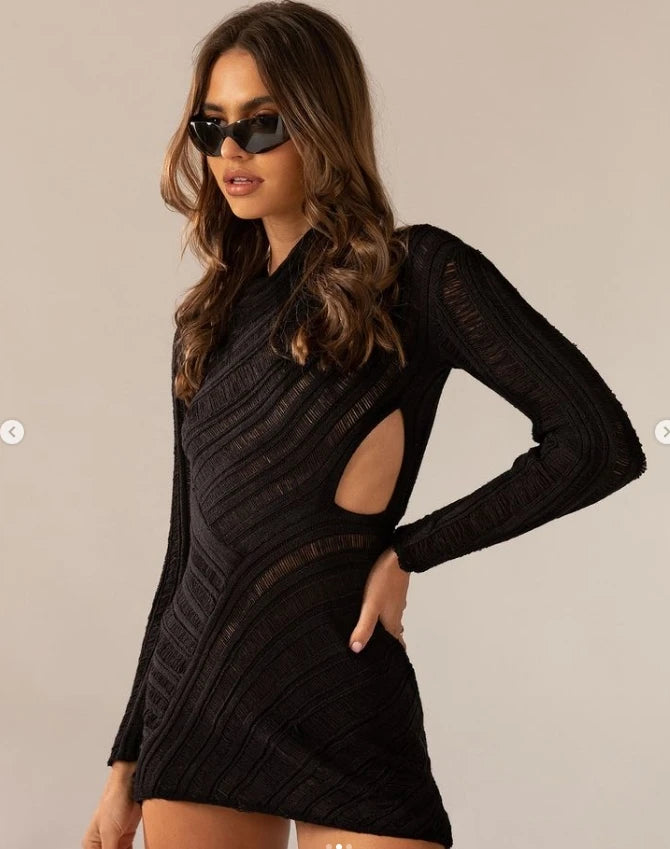 Embrace Y2K vibes with this sexy crochet hollow-out mini dress for women. Featuring long sleeves and a flattering slim-fit bodycon silhouette, this see-through short dress is perfect for parties, clubwear, or making a bold statement at any event. The delicate crochet pattern adds a touch of vintage-inspired charm, while the unique design ensures you stand out wherever you go.