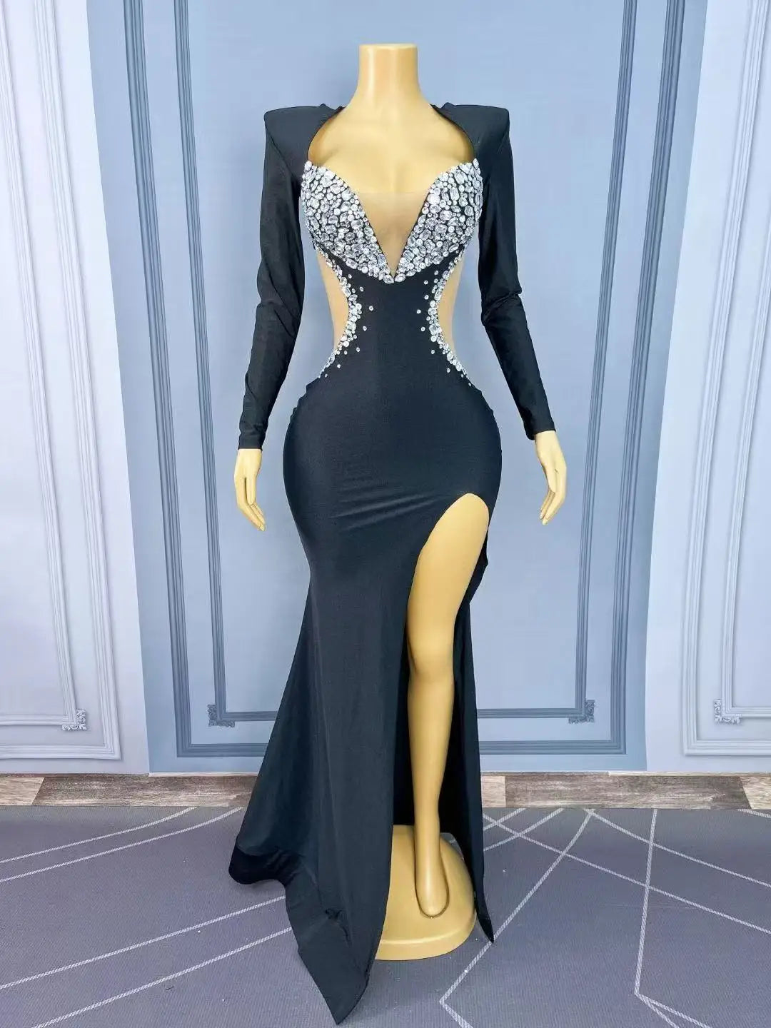 Make an unforgettable entrance in this Women Luxury Rhinestones Gown — an elegant long dress designed to steal the spotlight at evening events, cocktail parties, red-carpet affairs, and stage performances. Meticulously crafted with thousands of shimmering rhinestones, the gown catches and reflects light from every angle, creating a luminous, bling-bling effect that elevates your presence whether you’re posing for a photoshoot or commanding the stage.