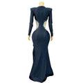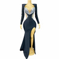 Women Luxury Rhinestones Gown Elegant High Split Long Dress Evening Cocktail Party Blingbling Outfit Photoshoot Stage Wear