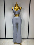 Women Sexy Bandage Crop Top Pant Set Evening Party Club Luxury Birthday High Street Fashion Elegant Luxury Birthday Outfit