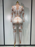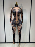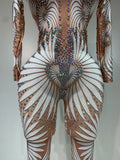 Women Sexy High Stretch Jumpsuit Long Sleeeve Holiday Party Cosplay Costume Nightclub Dancer Outfit Sparkly Diamond Stage Wear