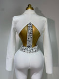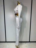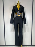 Women Sexy Long Sleeve Beading Bodycon Two Pieces Pants Bandage Set Celebrity Designer Fashion Women's Luxury Birthday Set