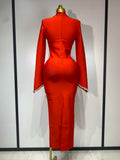 Women Sexy Long Sleeve Diamonds Maxi Long Bodycon Bandage Dress 2025 Celebrity Elegant Evening Party Luxury Birthday Dresses
