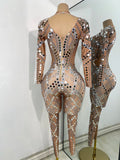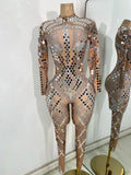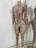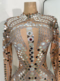 Women Sexy Spandex Tight Jumpsuit Long Sleeve Mirrors Cosplay Costume Nightclub Dancer Outfit Performance Stage Wear