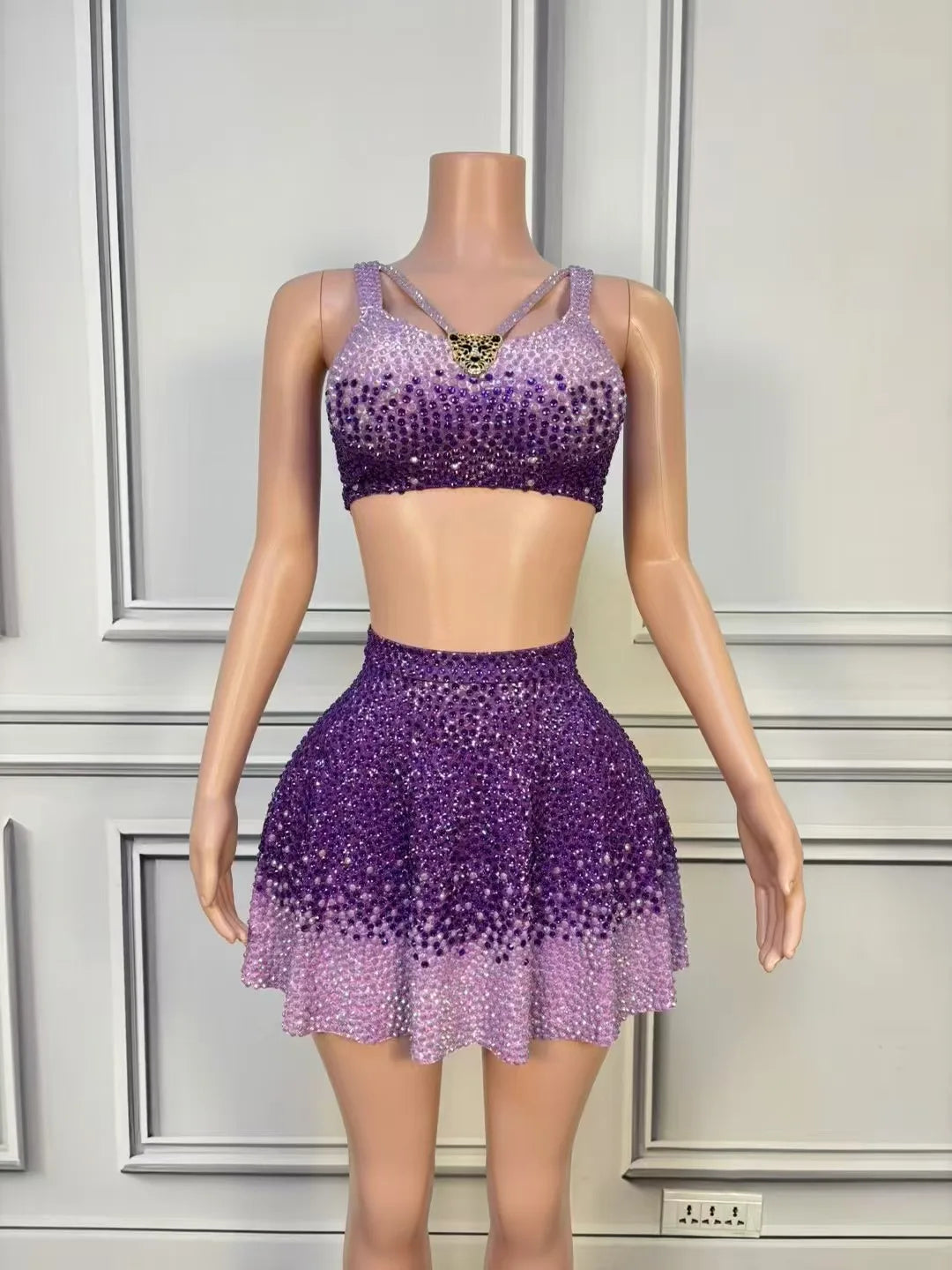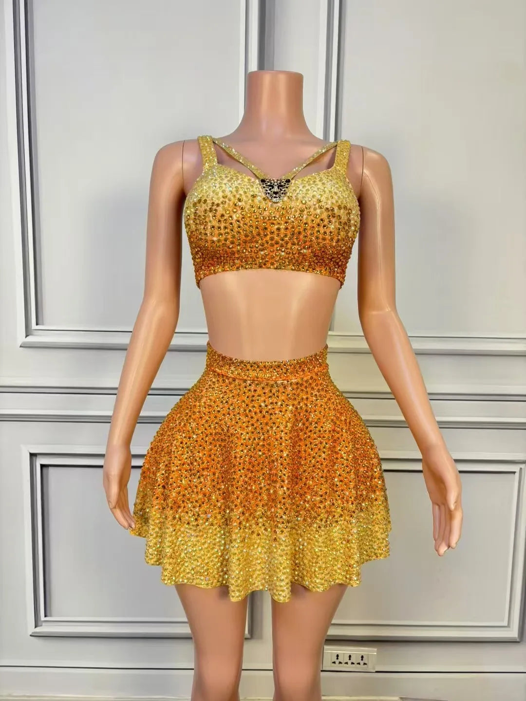 Make every spotlight moment unforgettable with this Women Sparkly Rhinestones Sexy Stage Dress — a daring, high-glamour ensemble designed for performers, party-goers, and anyone who wants to shine in photos and on stage. This set combines sheer mesh, concentrated rhinestone coverage, and performance-ready construction for an eye-catching, flattering look.