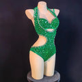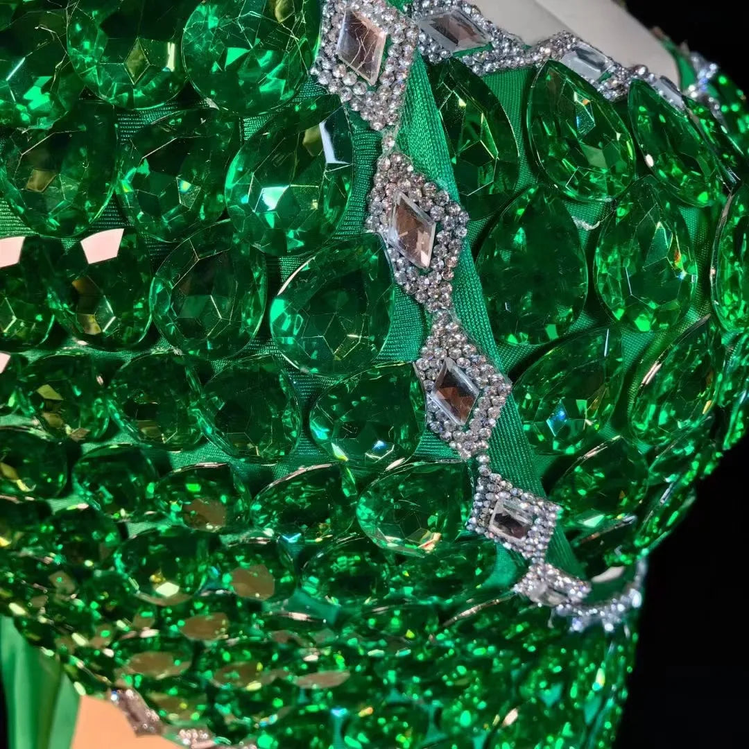 Turn the stage into your runway with this Women Stage Rhinestone Crystals Bodysuit Costume — a high-impact, performance-ready green bra and short set designed for singers, DJs, dancers, and entertainers who demand sparkle, support, and freedom of movement. Crafted to catch every light and camera flash, this outfit balances sexy, modern styling with the practical features performers need.