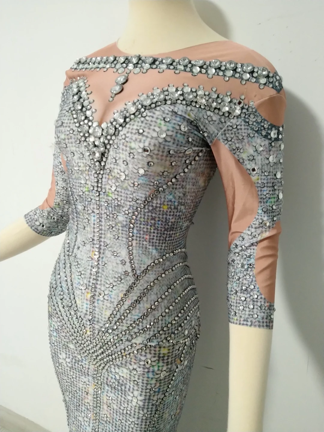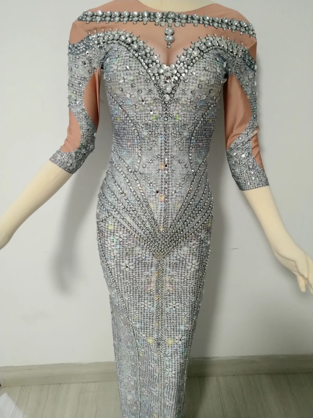 Women's Birthday Celebrate Tassels Dresses Festival Evening Wear Fringes Crystal Long Dress Singer Tassel Dress Costumes