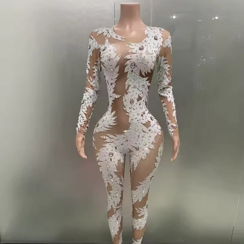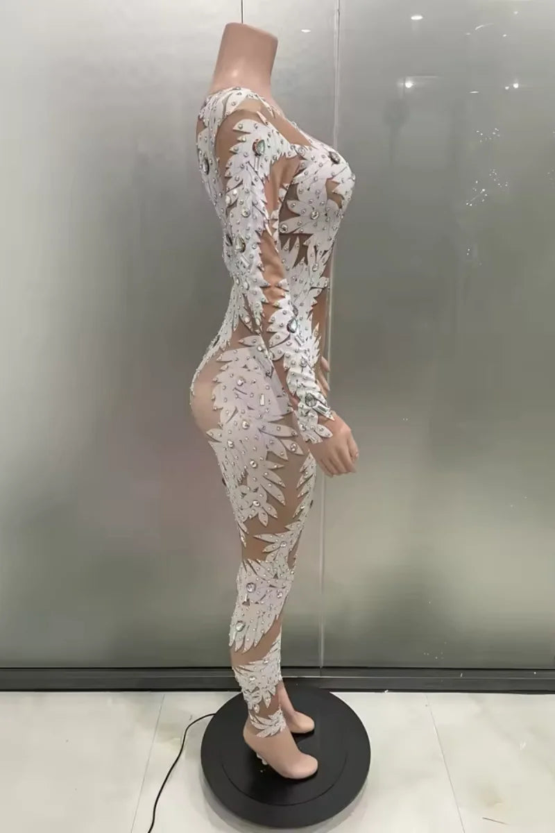 Shiny Crystal Sequins Sexy Body Suit for Night Club Party Club Performance Costume Stage Wear